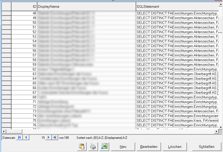 Veraltete oder nicht mehr verwendete Abfragen aus der Flexiblen Ansicht lassen sich von der Administration an dieser Stelle löschen.