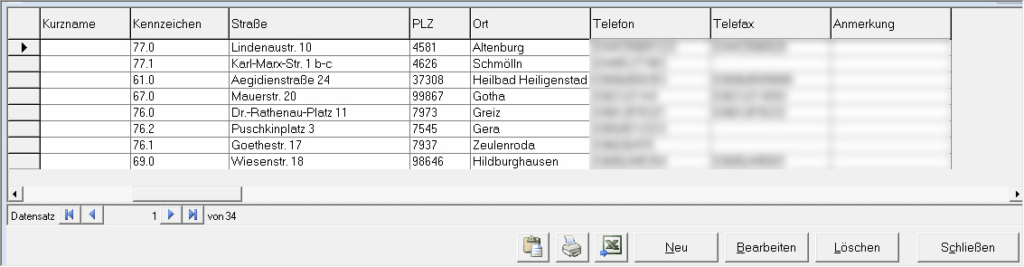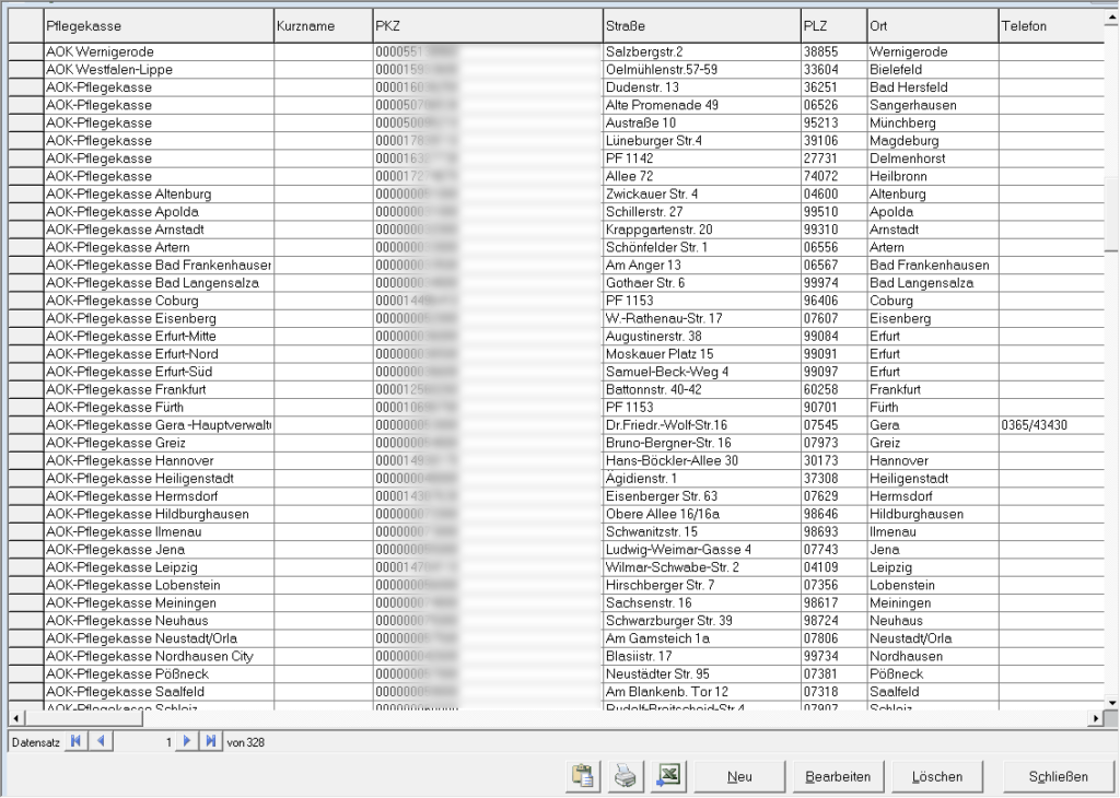 Die Verwaltung der Adressen der Pflegekassen ist hier möglich.