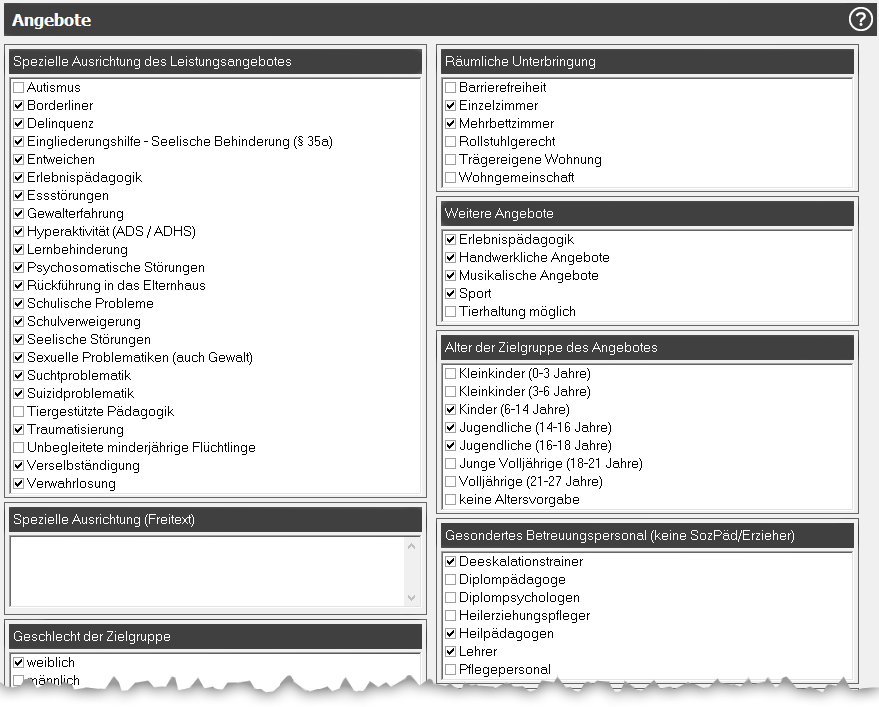 Definieren Sie hier die Angebote der ausgewählten Einrichtung.