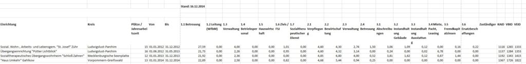 Diese Funktion listet die hinterlegten Werte der einzelnen Kostenpositionen für z. B. die Verwaltung, der Miete oder der KFZ-Leasing in einer Excel-Tabelle auf.