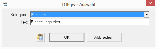 Viele der in TOPqw eingegebenen Informationen werden aus Auswahlfeldern vorbelegt. Diese Auswahlfelder und deren Inhalte können an dieser Stelle erweitert werden.