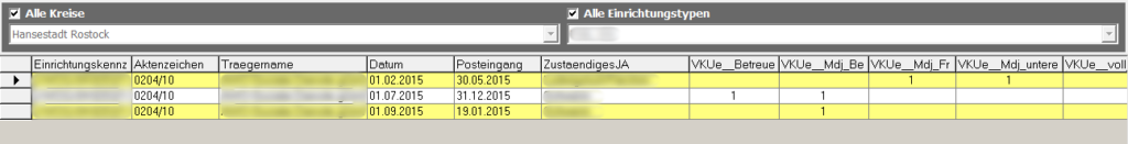 Definieren Sie die Rahmenbedingungen (Kreis, Stichtag und Einrichtungstyp) und klicken auf den Button Anzeigen.