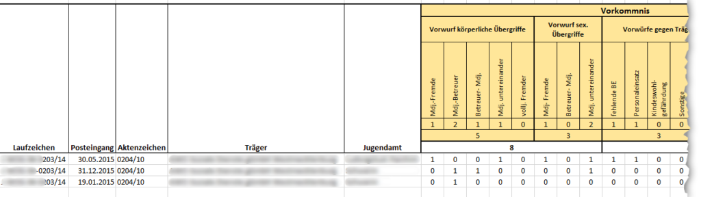 Als Grundlage der formatierten Variante dient eine unformatierte Variante, die Sie unter Vorkommnisse_Export finden.