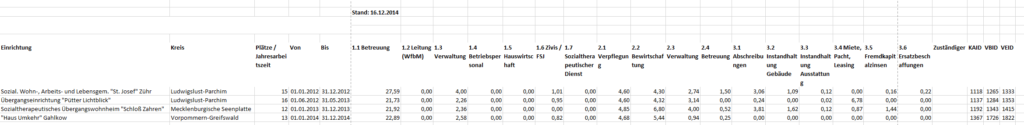 Diese Funktion listet die hinterlegten Werten für z. B. die Verwaltung, der Miete oder der Ersatzbeschaffung in einer Excel-Tabelle auf.