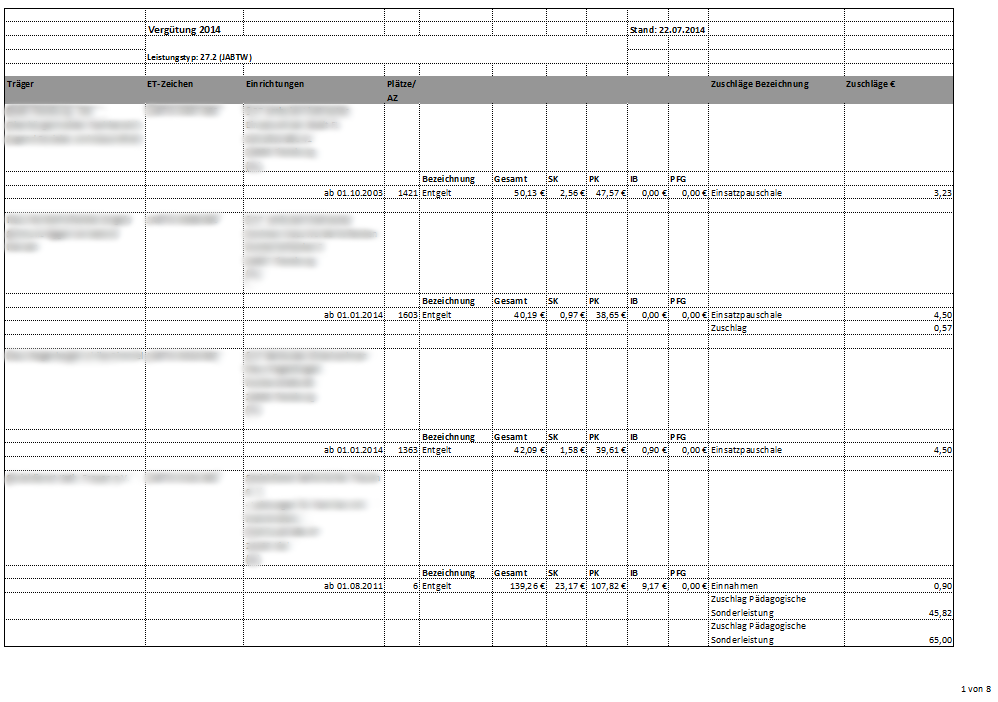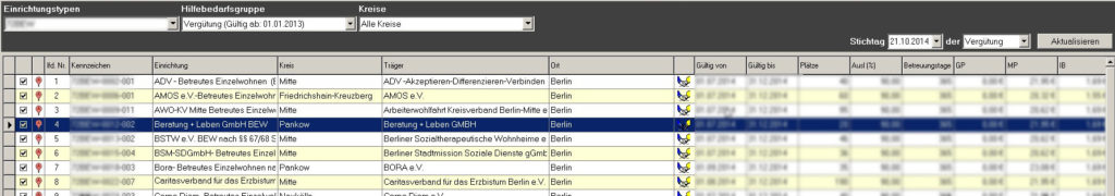 Sie haben hier die Möglichkeit sich selektiv Einrichtungen mit ihren hinterlegten Preisen, der Träger und der verfügbaren Plätze anzeigen zu lassen.