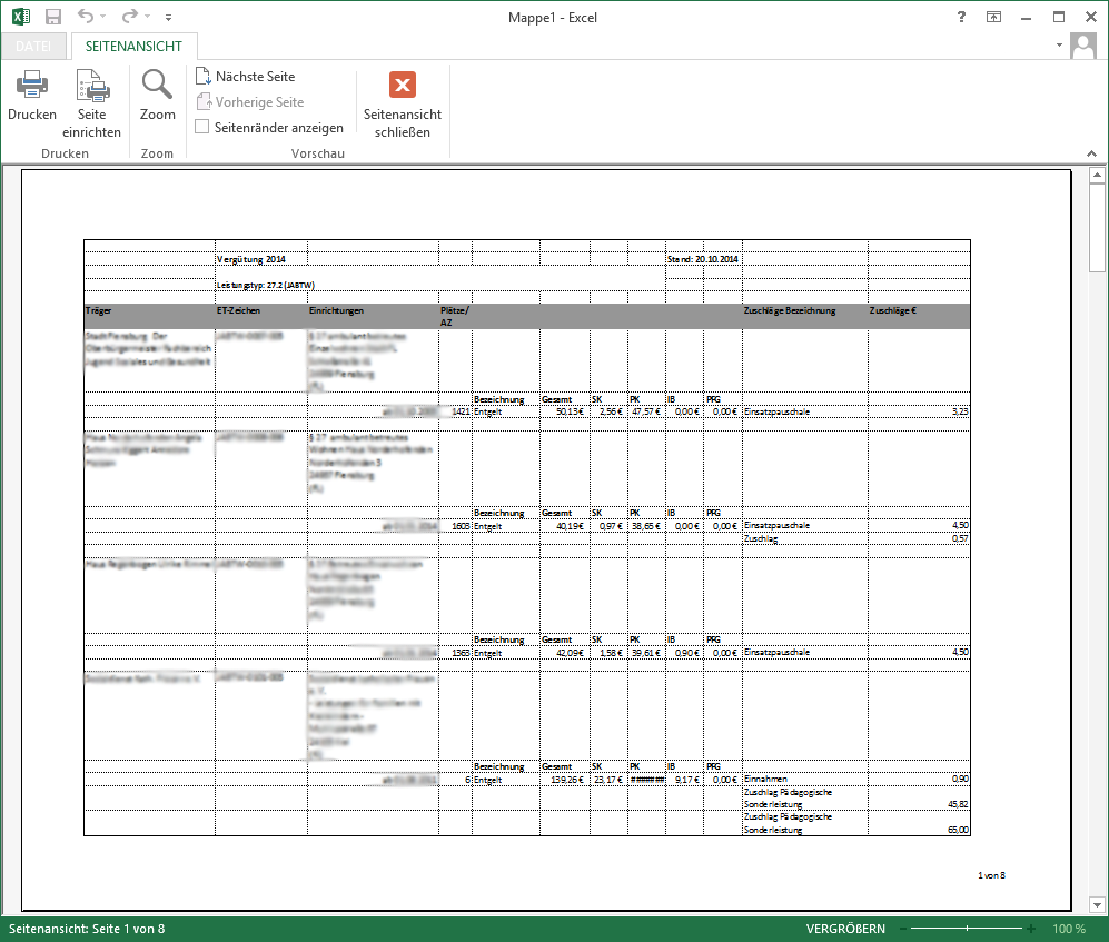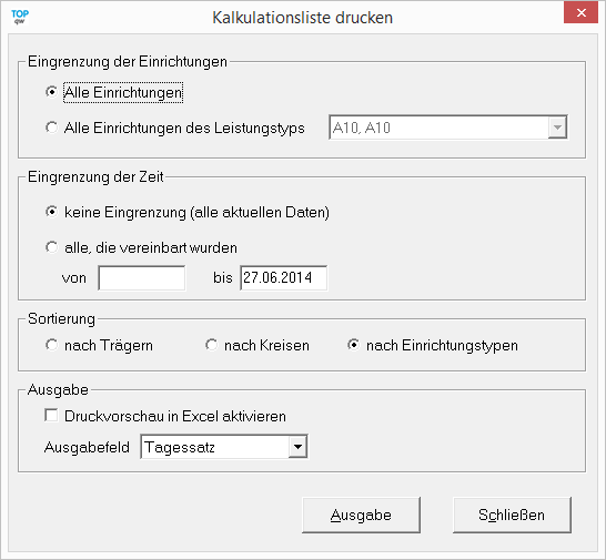 Die Kalkulationsliste gibt je nach Einstellung im nachfolgenden Formular die Kalkulation der Vergütungen in einer Liste in Microsoft Excel aus.