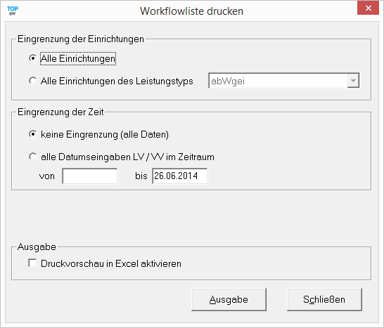Die Workflowliste gibt je nach Einstellung im nachfolgenden Formular den aktuellen Stand des Workflows in eine Microsoft Excel-Liste aus.