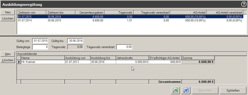 Hinterlegen Sie hier die Auszubildende und die dazugehörige Ausbildungsvergütung.