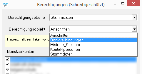 Über die Checkbox „nur berechtigte Konten anzeigen“ blenden Sie unberechtigte Anwender aus.