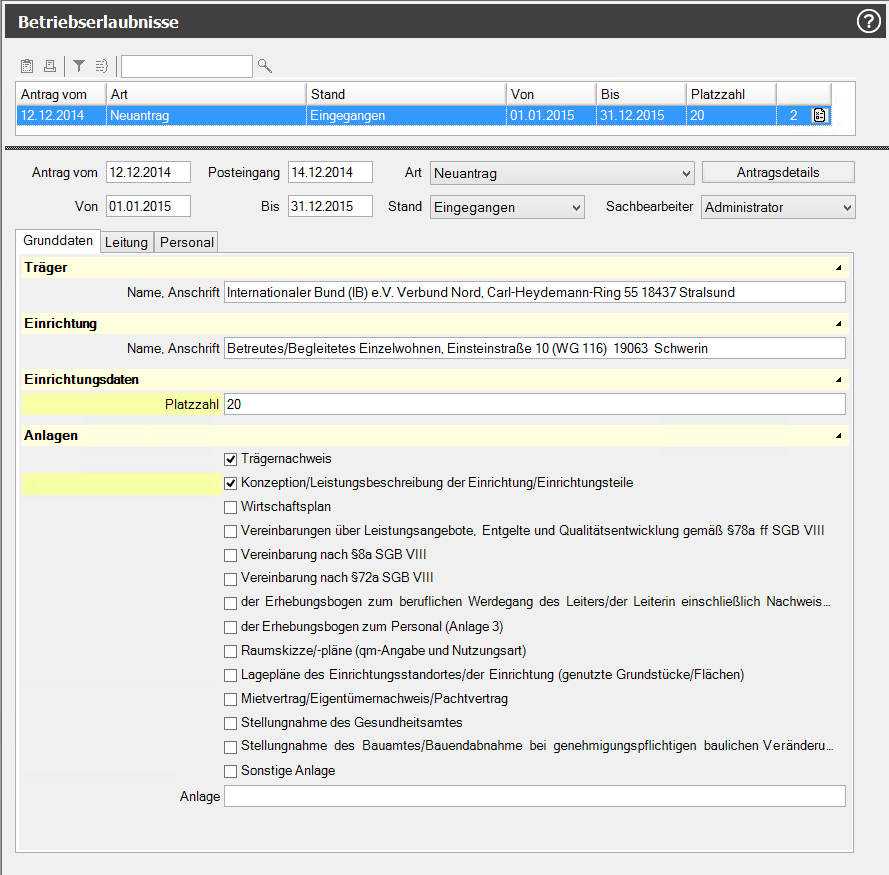 Der Personalschlüssel wird ebenfalls in den Stammdaten angezeigt. Dafür muss die Betriebserlaubnis unter den Antragsdetails auf Betriebserlaubnis erteilt oder Betriebserlaubnis befristet erteilt eingestellt und nicht abgelaufen sein.