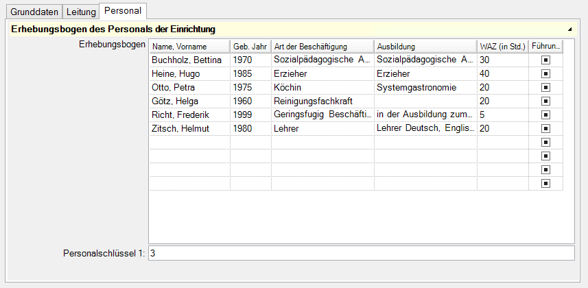 Hinterlegung des Erhebungsbogens des Personals und die Definition des Personalschlüssels.