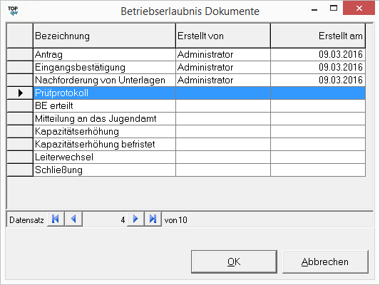 Nachdem es erstellt wurde, wird vermerkt wer das Dokument erstellt hat und wann.