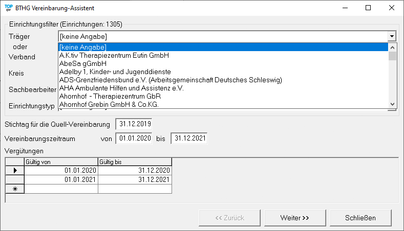 Es werden nur die Einrichtungen mit aktueller Vergütungsvereinbarung angezeigt.