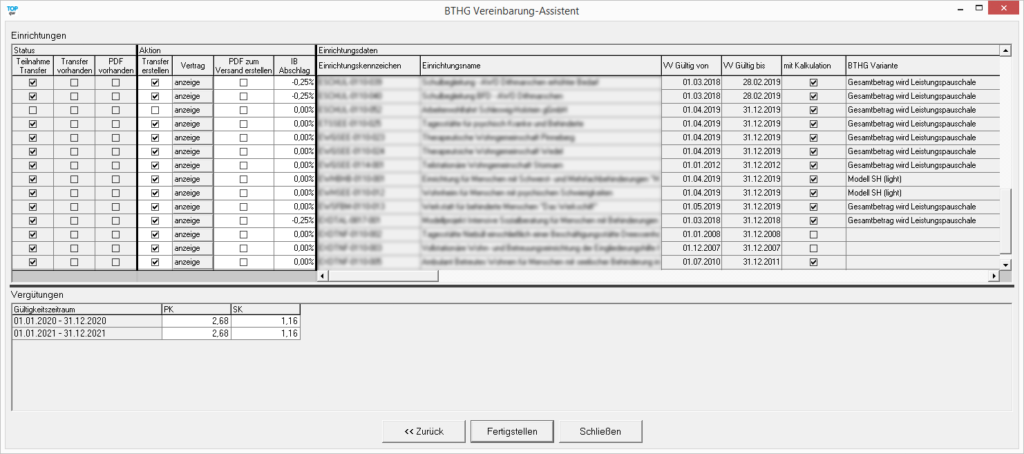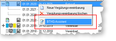 Im Vergütungsmanagement können Sie über ein Rechtsklick auf eine erstellte Vergütung den BTHG-Assistent starten. Es wird dann automatisch die Einrichtung ausgewählt und Sie erhalten die Möglichkeit eine BTHG Umstellung durchzuführen oder im nachhinein die PDF Datei für den Postausgang generieren.