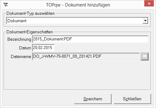 Eine Dialogbox erscheint, über die Sie der gewählten Datei einen Dokument-Typ zuweisen können.