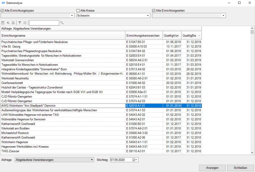 - Vergütungen und Leistungsvereinbarungen nach Leistungstyp und Kreis gefiltert zum Stichtag