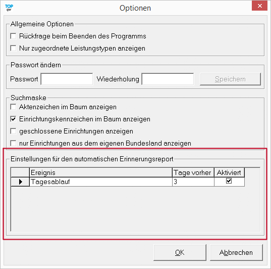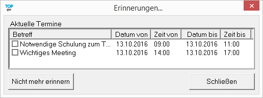 Dieser Dialog taucht immer zum Programmstart auf, sofern dem Benutzer bestimmte Terminerinnerungen erreichen sollen.