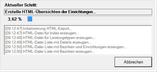 Dieser Vorgang wird Ihnen im folgenden Dialog angezeigt und kann je nach Größe der zu exportierenden Datei etwas Zeit in Anspruch nehmen.