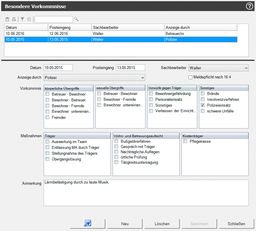 können Sie das gewählte Vorkommnis nach Microsoft Word exportieren.