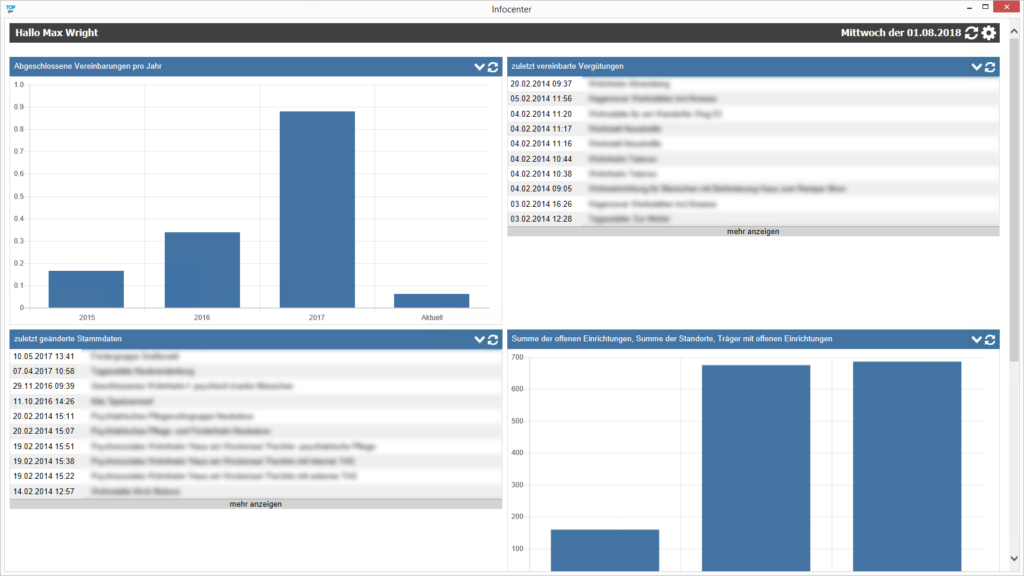 Das Infocenter ermöglicht Ihnen einen schnellen und übersichtlichen Überblick über diverse Bereiche: