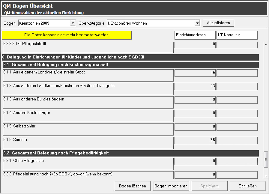 Die einrichtungsbezogenen hinterlegten Werte können eingelesen und dann für Anwender, falls nötig korrigiert werden, hierbei werden jedoch nicht die gemeldeten Zahlen geändert, sondern neue Werte extra eingegeben.