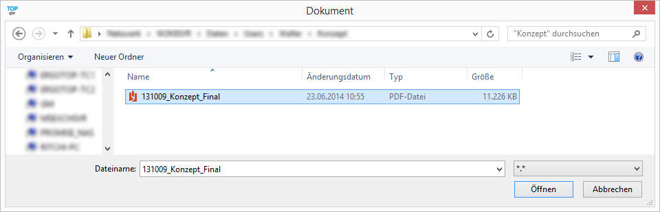 Wählen Sie die Konzeption aus und klicken auf Öffnen.