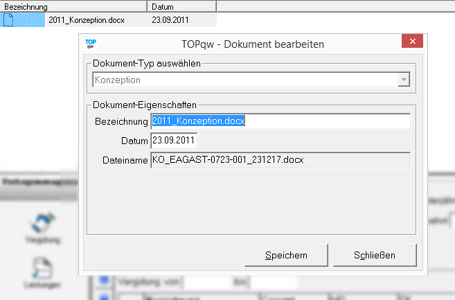 Neben den Vergütungsvereinbarungen können auch Konzeptionen in TOPqw hinterlegt werden.
