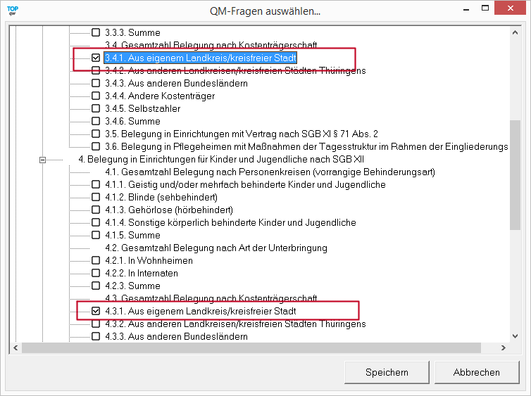 - Nachdem Sie alle gewünschten Fragestellungen markiert haben, klicken Sie bitte auf den Button Speichern.
