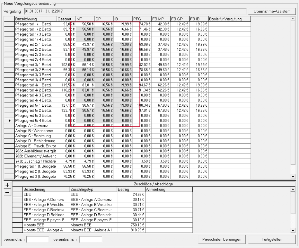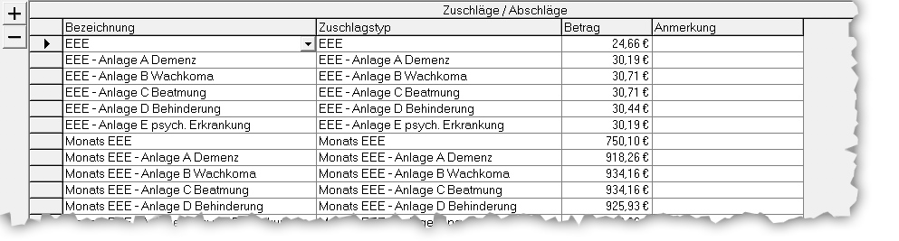 Hier können Sie die Zuschläge und Abschläge der Vergütungsvereinbarung hinterlegen.