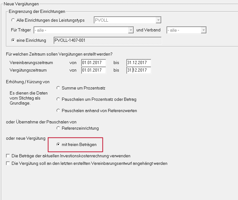 Über den Punkt „mit freien Beträgen“ können Sie eine komplett neue Vereinbarung erstellen.