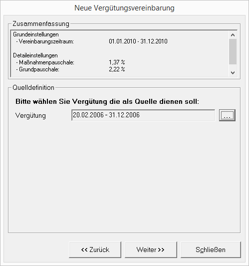 Optional ist es in diesem Prozess möglich eine Vereinbarung über mehrere Zeiträume mit unterschiedlichen Vergütungen zu erstellen. Wählen Sie hierzu einen Entwurf aus, in dem ein zweiter Vergütungszeitraum hinterlegt werden soll.