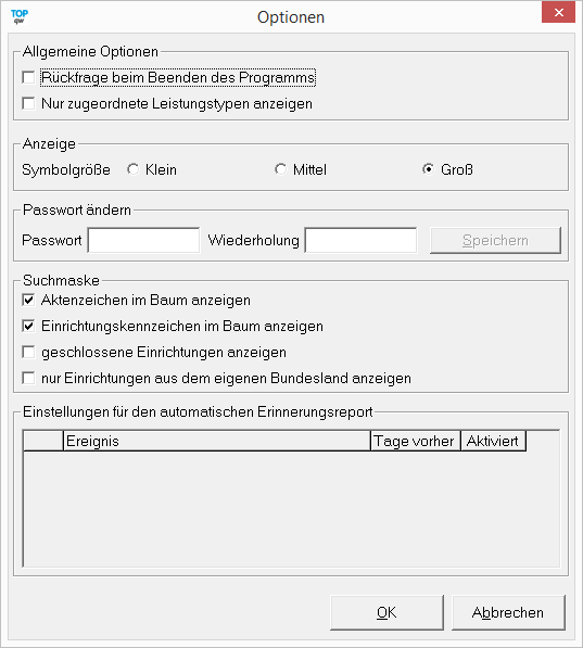 Die Optionen sind Einstellungen, die nur den angemeldeten Anwender betreffen und die er selbst einstellen kann.