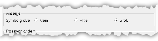 Sie können hier die Größe der Icons der Symbolleiste definieren: