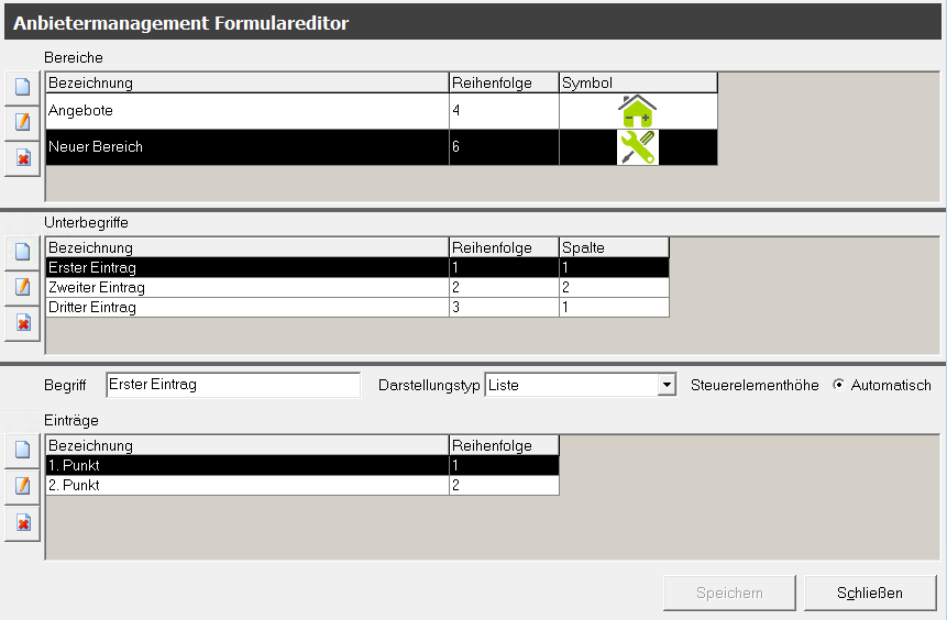 Mit diesem Editor können Sie den Bereich unter Angebote im Anbietermanagement editieren oder komplett neue Bereiche erstellen.
