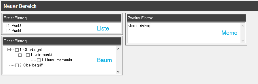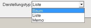 Sie können zwischen drei Eigenschaften wählen: Liste, Baum oder Memo.