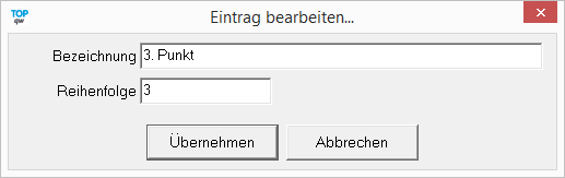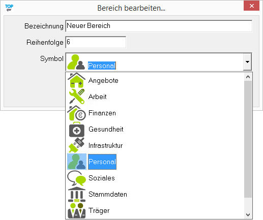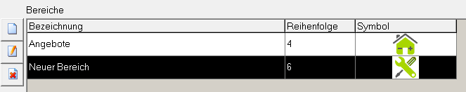 In folgendem Dialog können Sie den Namen, die Reihenfolge der hinterlegten Bereiche und ein Symbol für den neuen Bereich bestimmen.