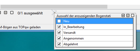 Auch hier werden mit „Akzeptieren“ alle Bögen in den Status „Angenommen“ gesetzt und nach TOPqw übertragen, bzw. bei „Ablehnen“ lediglich der Status auf Abgelehnt gesetzt.