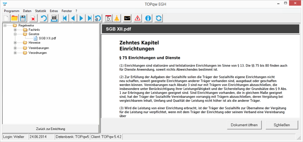 In dem Bereich der Regelwerke finden Sie relevante Gesetze, Verordnungen und Vereinbarungen als Nachschlagewerk, ohne TOPqw verlassen zu müssen.