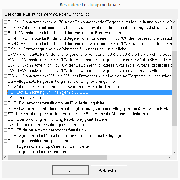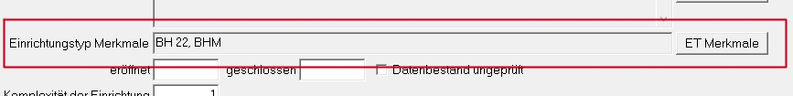 Innerhalb der Stammdaten können Sie über ET Merkmale / Merkmale die unter Daten → Leistungsmerkmale hinterlegten Daten der Einrichtung zuordnen.