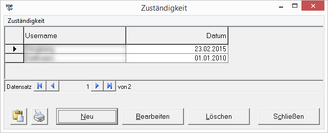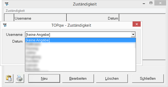 Sie haben die Möglichkeit die Zuständigkeit zu definieren. Es können nur registrierte Anwender von TOPqw gewählt werden.