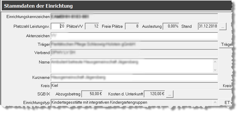 An verschiedenen Stellen im Programm finden Sie Felder zur Eingabe ober zur Anzeige der Platzzahl wieder. Die Kapazität ist die aktuell vereinbarte Kapazität zwischen den Einrichtungsträger und dem Leistungsträger.