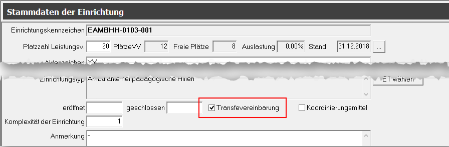 Da die Platzzahl in der Regel in einer Leistungsvereinbarung festgehalten wird heißt sie im Programm Platzzahl LV.