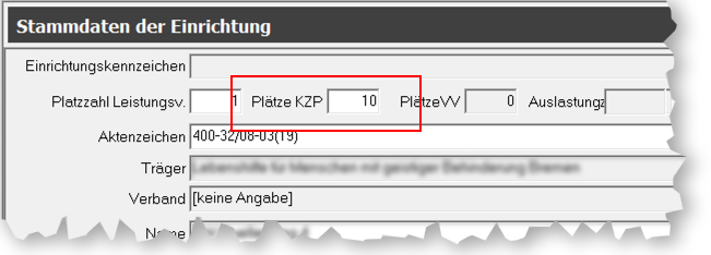 Damit im Stammdatenformular die KZP-Plätze eingegeben werden können muss dieser Harken gesetzt sein. Das Eingabefeld wird aber nur dann angezeigt, wenn es für den Einrichtungstyp aktiviert wurde.