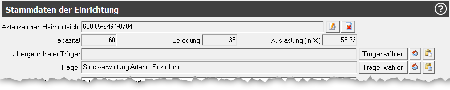 Das Aktenzeichen bildet die Verknüpfung zu einem eventuell vorhandenen internen Aktenplan zu den Einrichtungsakten.