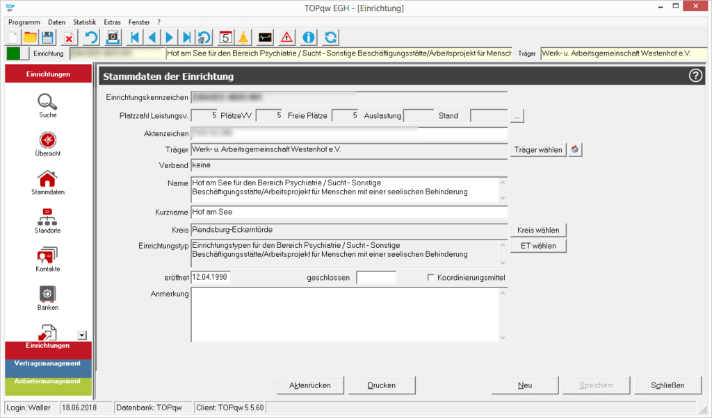 Das Einrichtungskennzeichen wird von Programm automatisch nach Ihren Vorgaben erstellt und stellt eine Eindeutigkeit der Einrichtung im TOPqw sicher.