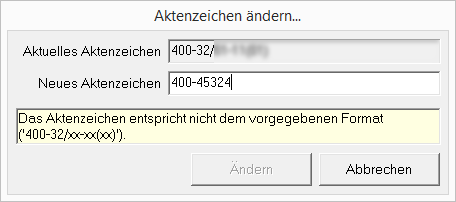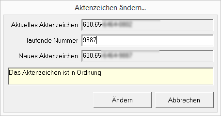 Über den Button können Sie ein neues Aktenzeichen eingeben bzw. das bestehende Aktenzeichen ändern.
