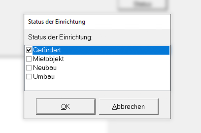 Wählen Sie über den Button Status einen Status für die Einrichtung aus.