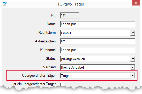 Um die Option Übergeordnete Träger nutzen zu können muss unter Extras → Administration → Einstellungen.