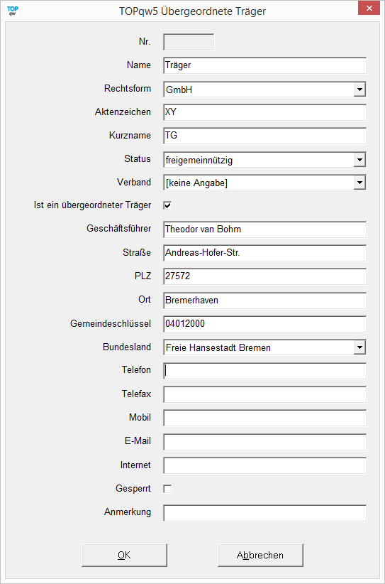 Dort muss der Punkt WertBOOL unter Global.Träger.ÜbergeortneteTrägerVerfügbar gesetzt sein.
