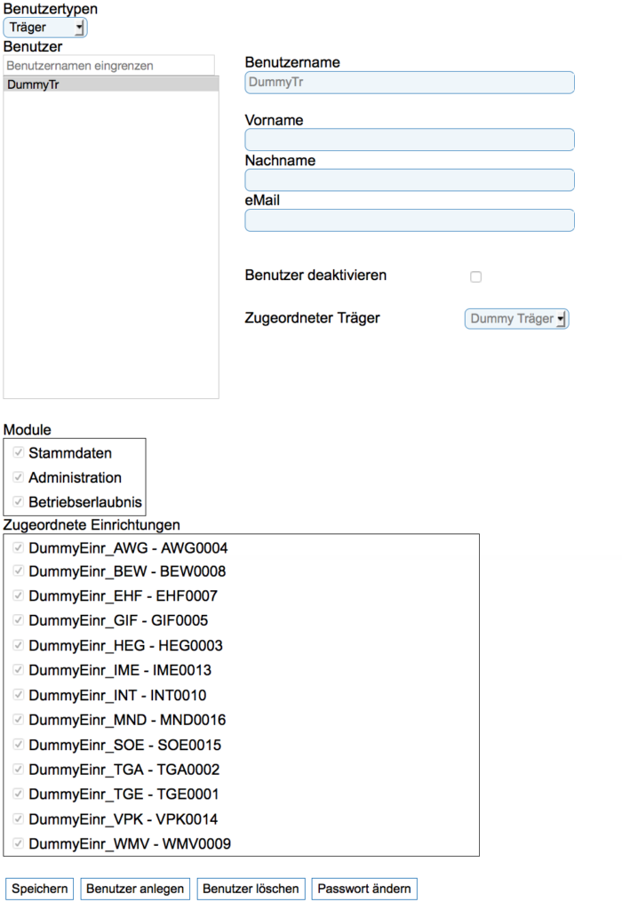 Wichtig: Die Passwörter der vom Einrichtungsträger eingerichteten Anwender können nur vom Anwender selbst, sofern berechtigt, oder vom Einrichtungsträger geändert, aber nicht ausgelesen, werden.